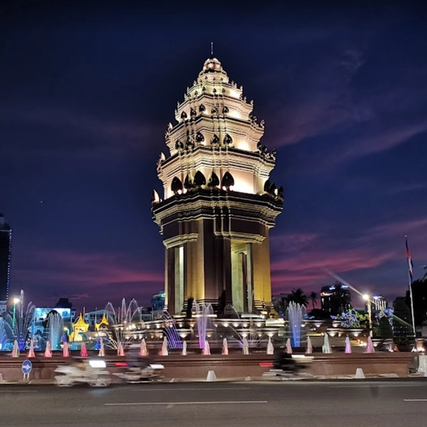 캄보디아의 수도 프놈펜에 있는 독립기념비는 1953년 프랑스로부터 캄보디아의 독립을 기념하기 위해 1958년에 건립되었습니다. 이 기념비는 도시 중심부의 노로돔 대로와 시아누크 대로의 교차점에 서 있습니다. 이것은 Banteay Srei의 크메르 사원과 다른 크메르 유적지에서 볼 수 있는 스타일의 연꽃 모양의 사리탑 형태입니다. 독립 기념비는 캄보디아 건축가 Vann Molyvann이 설계했습니다. 높이는 37미터입니다. 국가 행사 기간 동안 독립 기념비는 활동의 중심입니다. 내부 받침대의 의식용 불꽃은 종종 왕실이나 고위 관리에 의해 점화되며 꽃 공물이 계단을 따라 늘어서 있습니다. 해마다 독립기념관은 외국인 관광객과 현지인 모두가 방문합니다. 기념비 뒤에는 노로돔 시아누크 기념관이 있습니다.