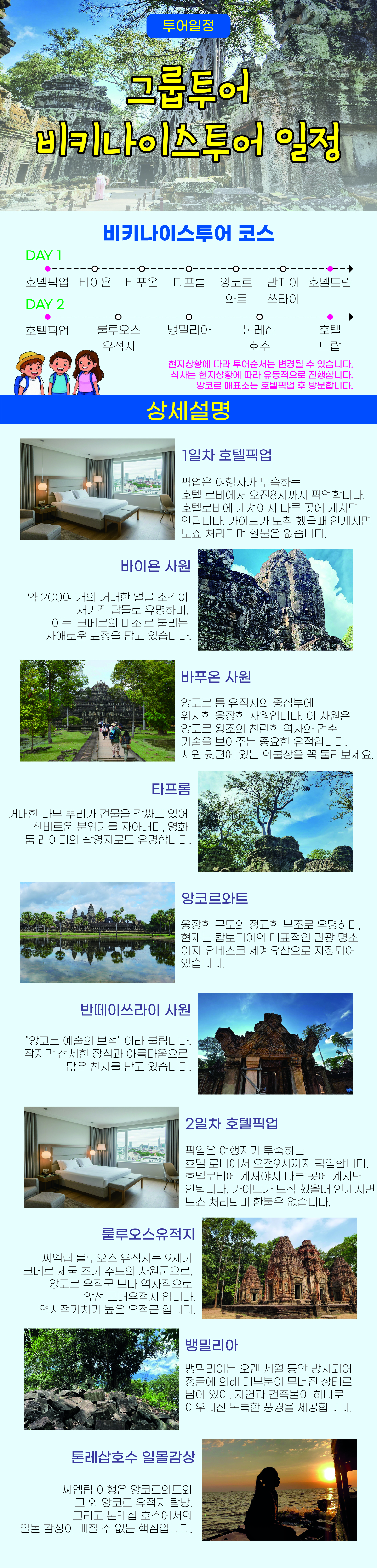★ ★ ★ 씨엠립여행이 처음이라면 2일간 제대로 구경하고 싶다면 "비키나이스투어를 추천합니다. 비키나이스투어(그룹) 알아보기