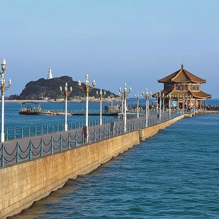 잔교는 칭다오만의 바다로 440m 길이로 곧게 뻗어 있는 청도(칭다오)의 상징적인 랜드마크입니다. 1891년 군용 부두로 건설되었으며, 긴 교량 끝에는 **중국 전통 팔각정인 화란각(回瀾閣)**이 있습니다. 칭다오 맥주 라벨에 그려져 있어 우리에게도 익숙한 이 장소는, 다리 양쪽에서 구시가지의 유럽풍 건물과 신시가지의 고층 빌딩을 동시에 조망할 수 있는 명소입니다.